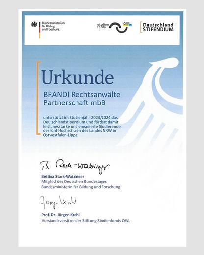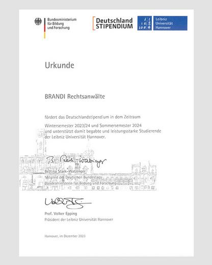 BRANDI fördert Deutschlandstipendium 2023/24