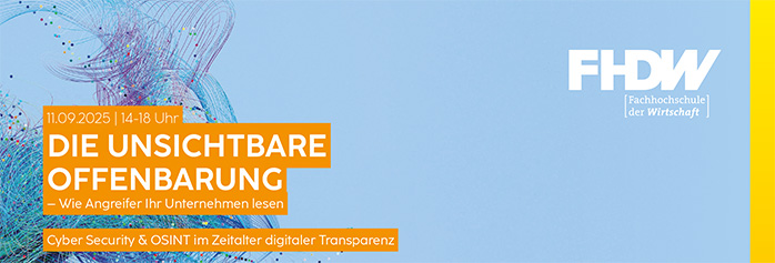 Antworten darauf gibt unsere Veranstaltung „Die unsichtbare Offenbarung – Wie Angreifer Ihr Unternehmen lesen“ am 11. September 2025 ab 14:00 Uhr am FHDW Campus Bielefeld, Meisenstraße 92, 33607 Bielefeld.